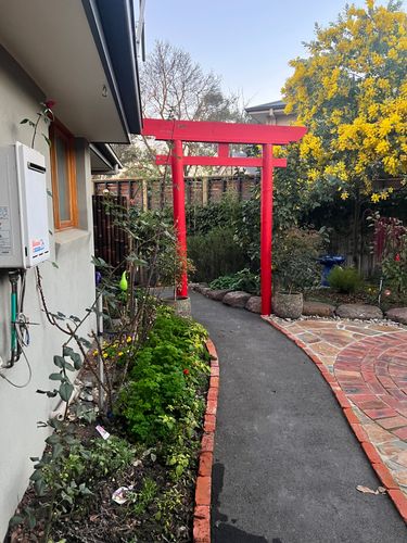 That Torii gate that you've built really stands out. I love that you've placed a brick border on the pathway as it leads your eyes to explore even further. I see that you've also paved the open area to the side. Would it be possible to see a picture of the entire area with the paved area as well? I'm sure our members would be keen to see the overall look of the area.