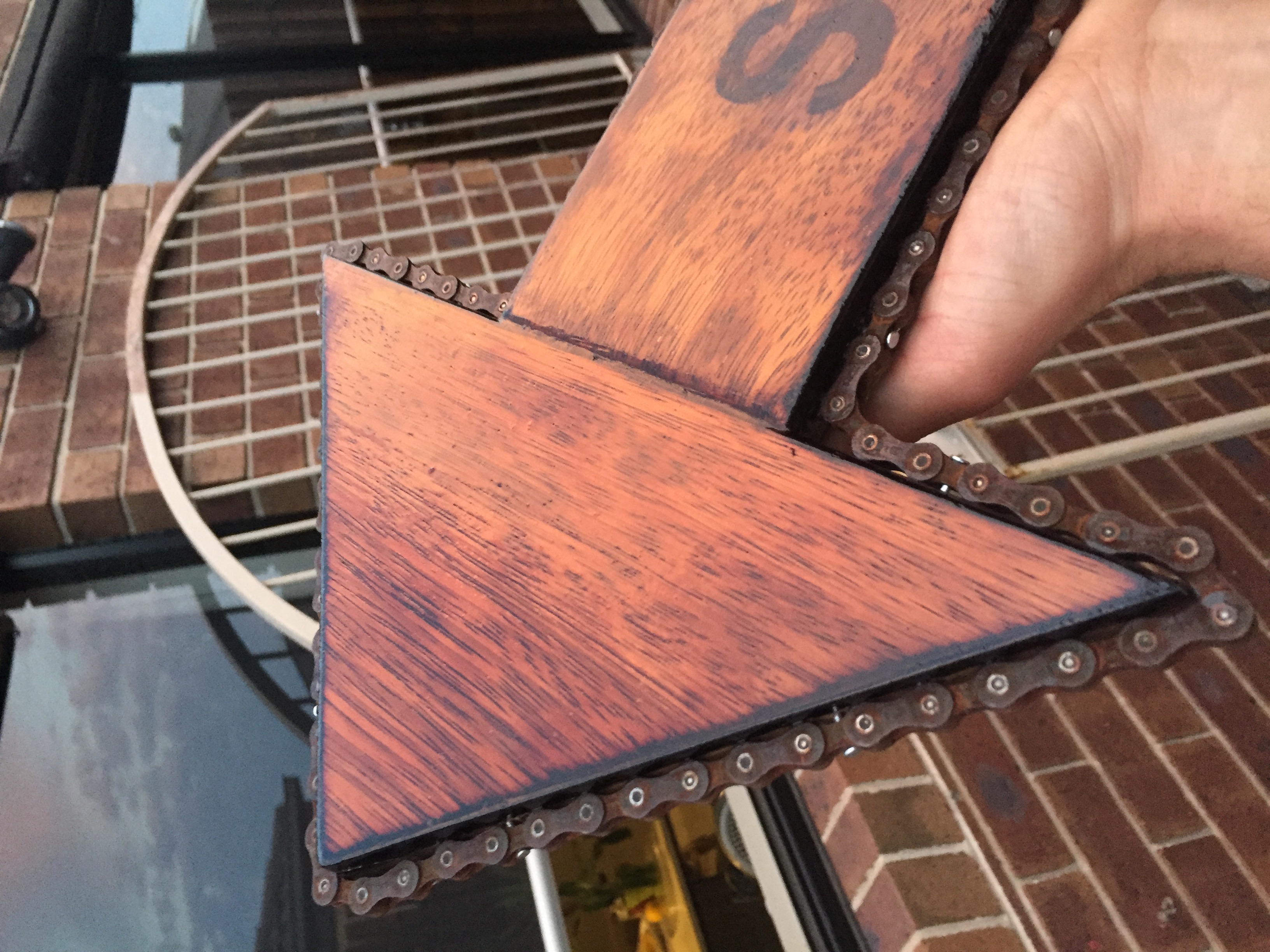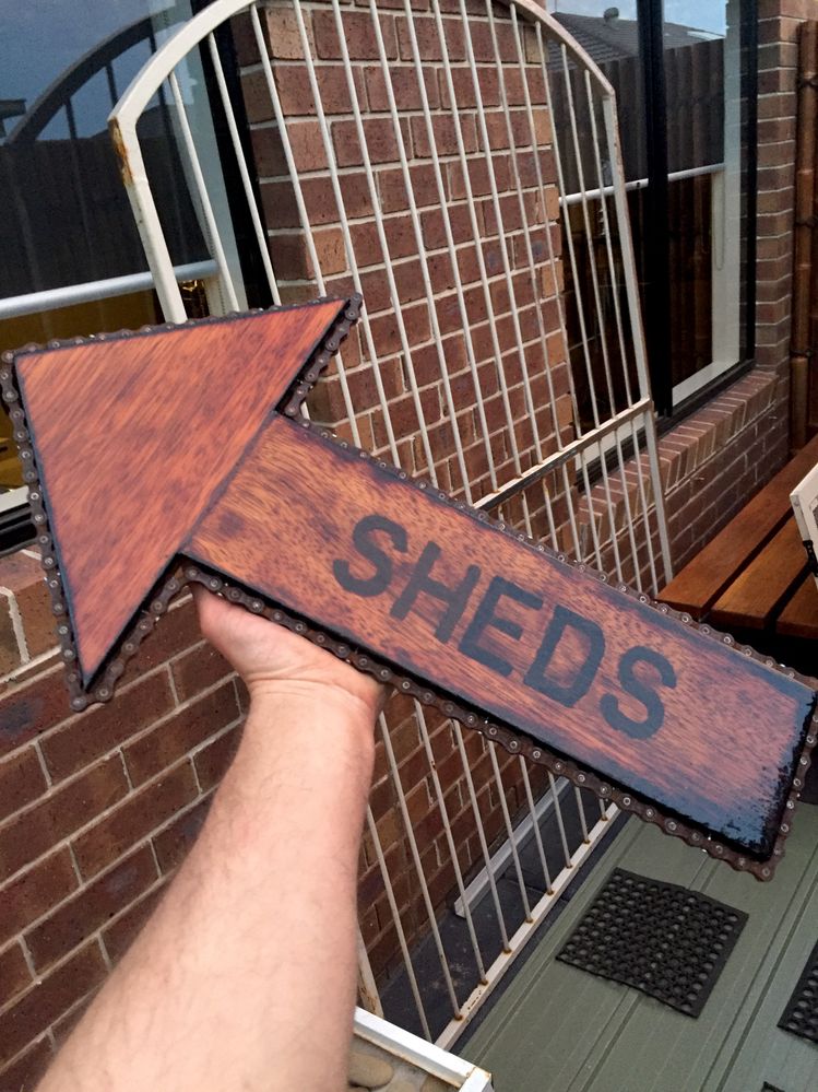 Re: Another sign for the garden - stencil -blowtorch -left over wood ,rusted bike chain -varnish