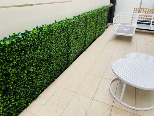 As per the pictures, I completed a DYI project, mounting some lightweight pool fencing (from Bunnings 😁) to act as fold up doors, then covering with artificial garden. Mounted to the rear of each fence panel was some lightweight composite plastic board, to help prevent moisture getting into the storage area.