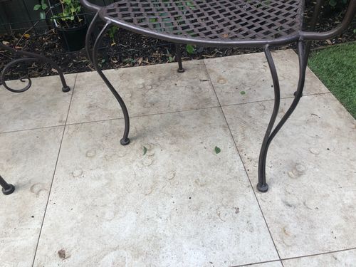 I have 1-year-old outdoor sandstone pavers that have been stained with plant litter and metal garden furniture (rust)