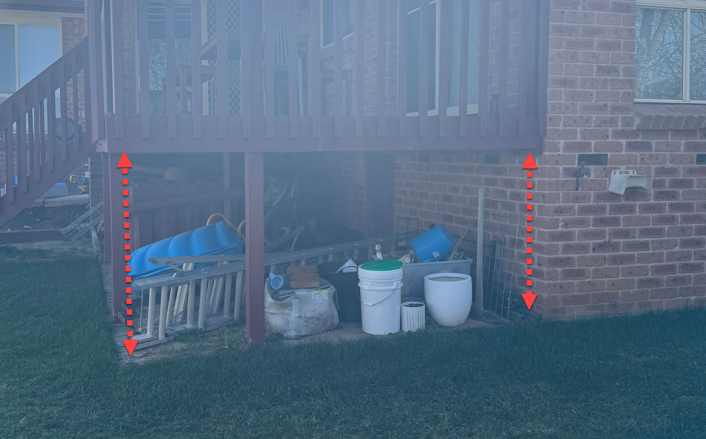 I was thinking of building a timber sub-frame between the existing posts/rails and fixing the boards to that, but I’m not sure on the best approach. Plus the deck is also on a slope 🤔 re gate/keeping it look neat.