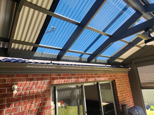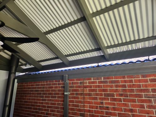 Hi guys, wanting some ideas of what to put where the gap is between roof and pergola roof. Need water to be able to flow down into gutter, thinking a bit more weather protection and to stop birds getting in over summer. Any ideas would be great