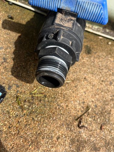 We’ve sprung a leak off the bottom of our rain water tanks. I’ve replaced all the pipes, and reconnected with washers. However, there is still a dripping leak as shown. It is at quite a difficult angle and I had lots of trouble screwing on cap to secure. Please assist!