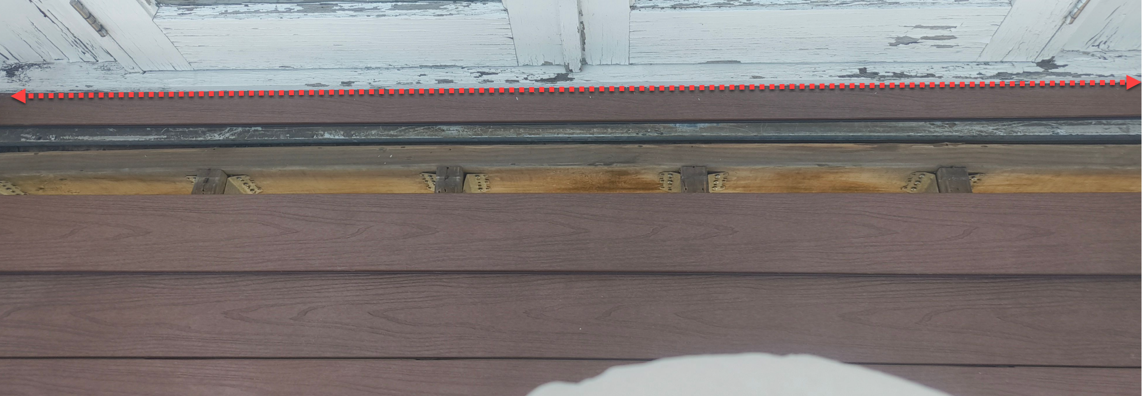 The only thing I would suggest is running a bead of clear silicone between the top of the decking board and the door frame to prevent water from getting underneath the door frame and sitting there slowly rotting it out.