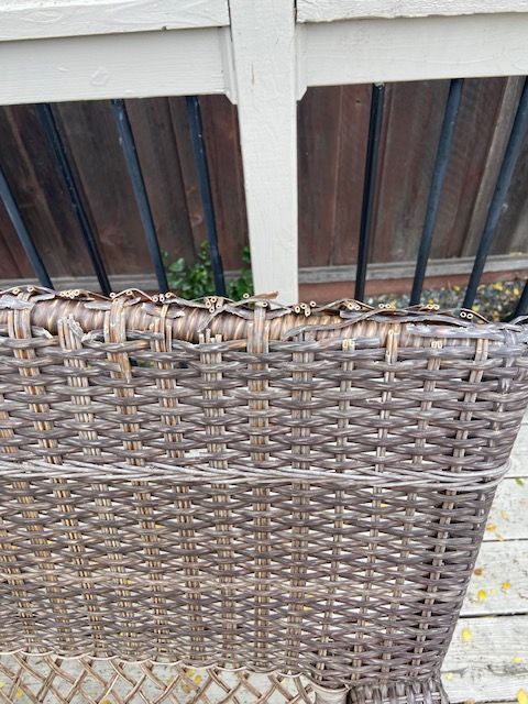 The top of the backs of patio chairs have been damaged by sun. The vinyl / resin wrapping around is mostly broken or cracking though the integrity of the back is good.