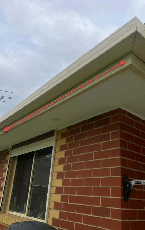 Attach it to the timbers that are behind this metal fascia with screw hooks.