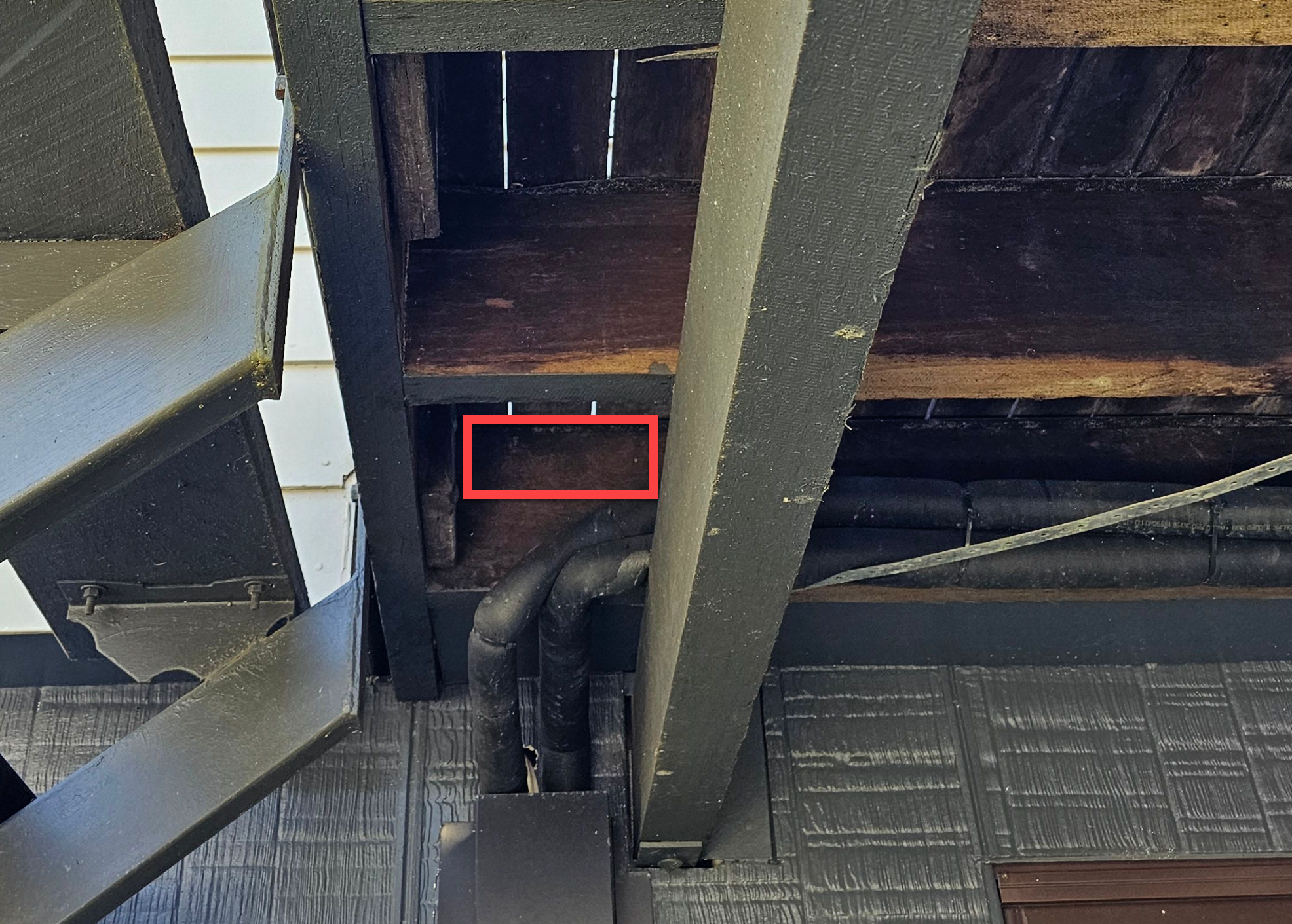 Thanks for the help thus far. Another pic for more clarity on clearances. You can see the gap to pipes, less than 70mm. As well as about where the post will go on the far side of the deck.