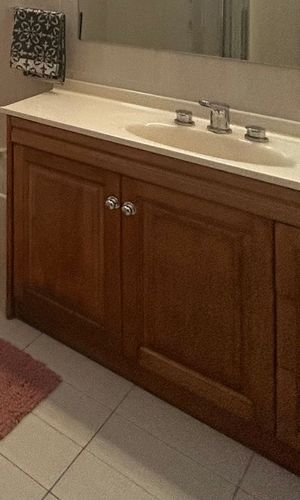 For the cabinetry, unless this is new bare timber, a moisture-resistant coating should be applied to it, which is typically varnish. Normally, you wouldn't have to do any maintenance on that.