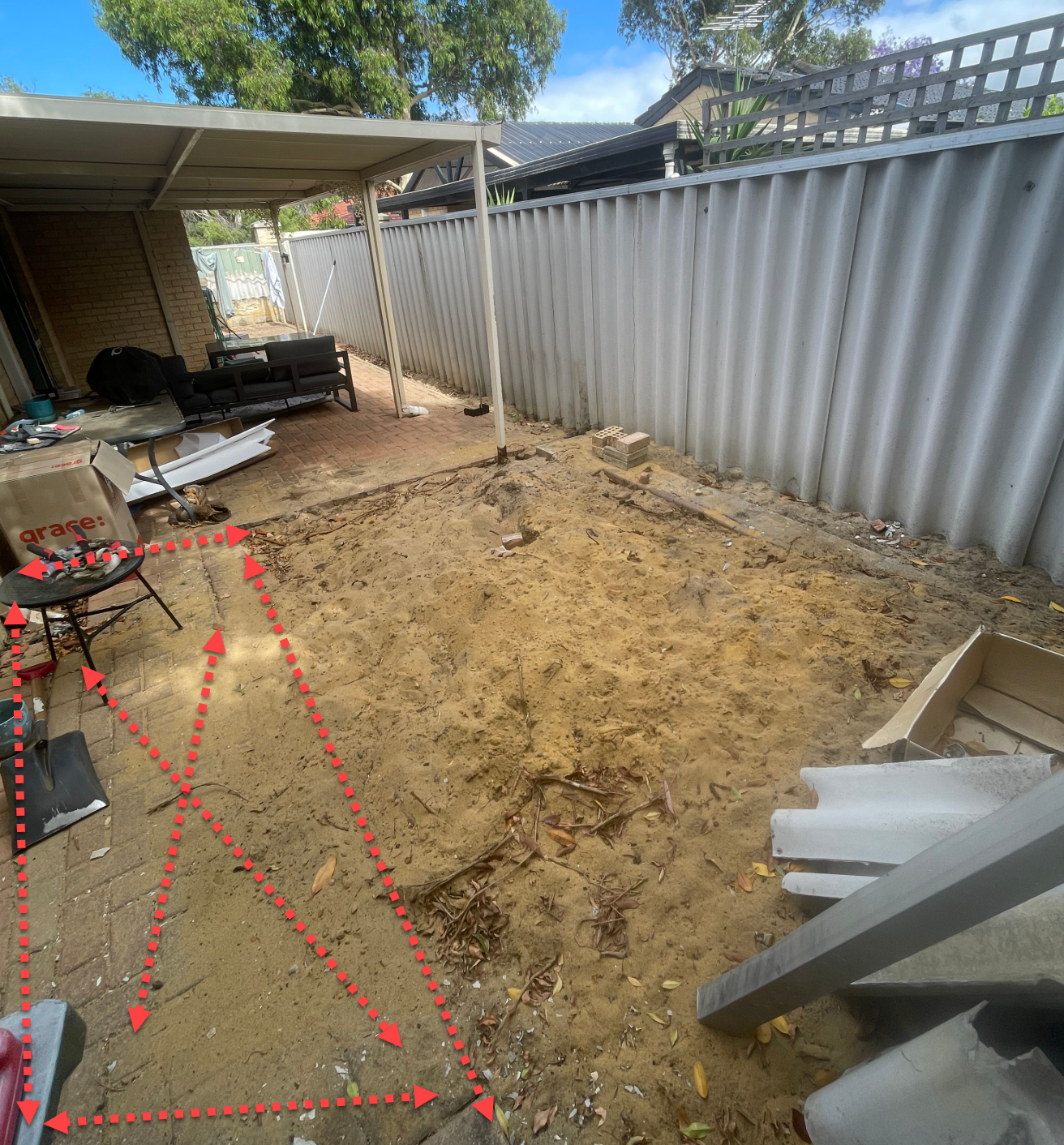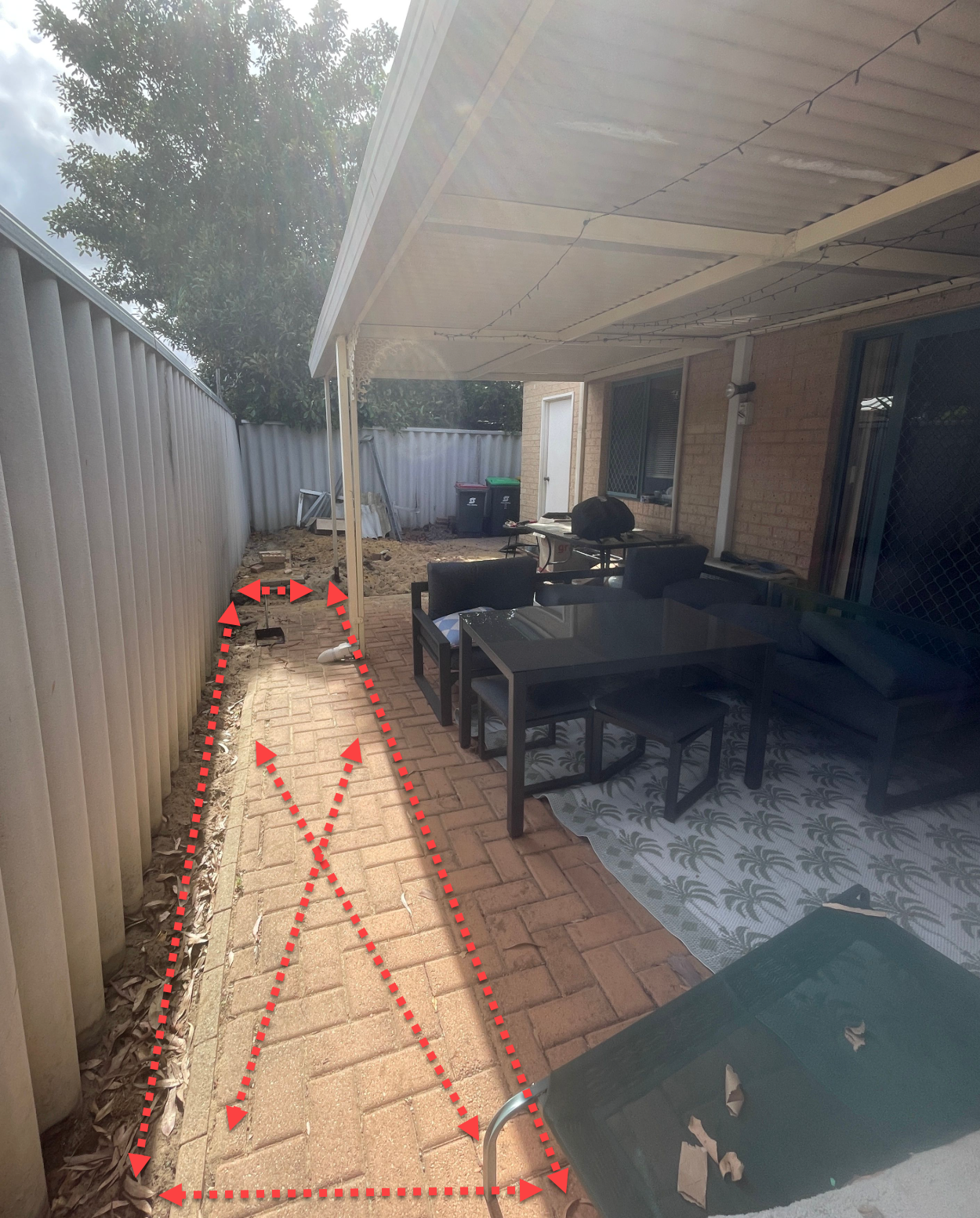 Thanks for the advice! I would certainly love to have the lawn on the areas you have marked, I just wasn't sure how to achieve it in the best way! Along the fence, it's quite narrow, do you think that would still look okay and function okay? Is the downpipe going to be a problem for laying it there? I would still have to keep that very narrow garden bed along the fence as that bit does not get sun. What should I plant along there?