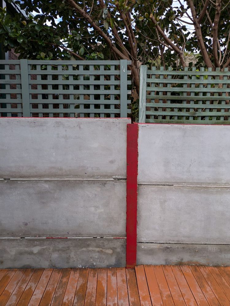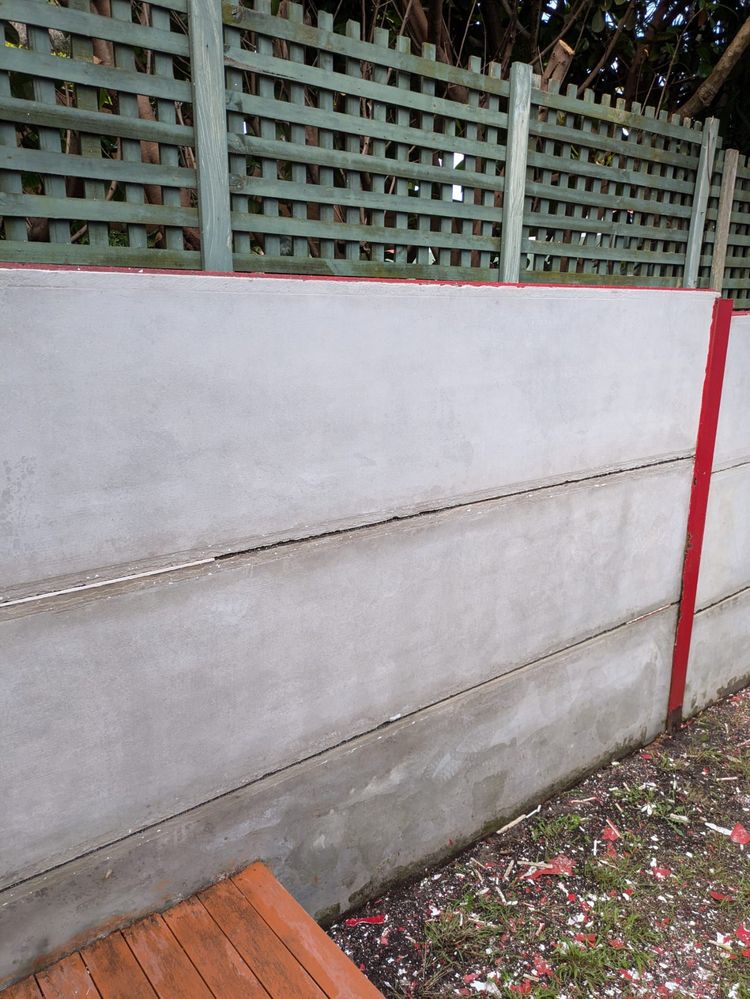I've just moved into a property that had a very poorly painted wall in the backyard. Most of it was peeling and many of the joins were cracked. I've pressure washed what remained to expose the raw concrete so that I can repaint it anything but the horrible bright red that it was before.