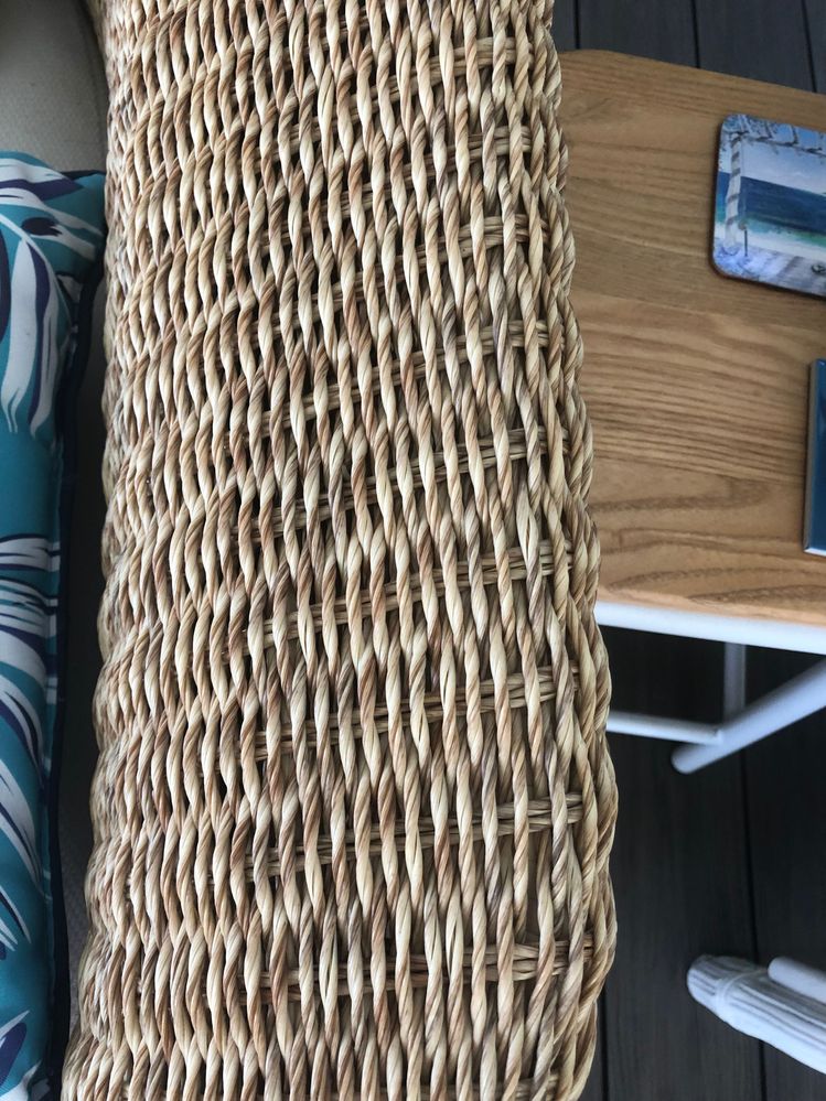 If you are planning on painting your wicker sofa with that brown and white pattern it will possibly take some time as there is no single brush that can duplicate the pattern in one go. The twisted rope pattern must be painted individually on each strip of the white chair to duplicate the effect. It's not impossible, but it will take a great deal of time.