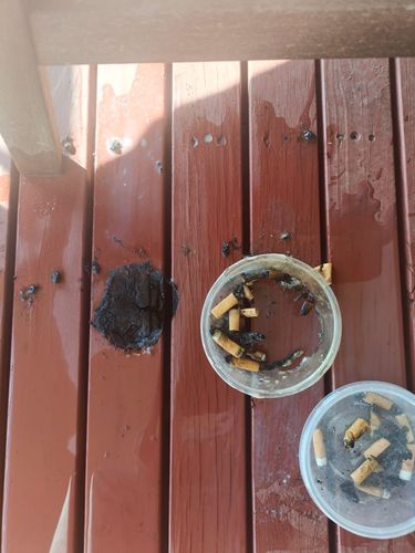We had an incident with an ashtray that caught fire and left a burnt mark on our deck. How can I replace this to its original state.