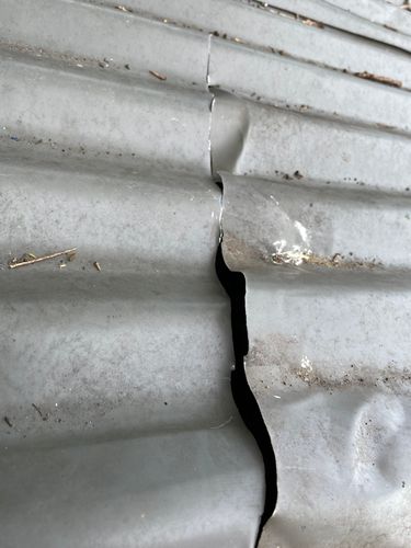 I have a long crack (appr 70cm) in the colourbond (metal) gazebo roof. Someone must have stepped on it and the unsupported part that’s in between the beams have cracked. I have straighten the metal sheet as much as I could but obviously there’s still a gap that varies between 1mm and 1.5cm. Please see the photos attached (the water runs from right to left).