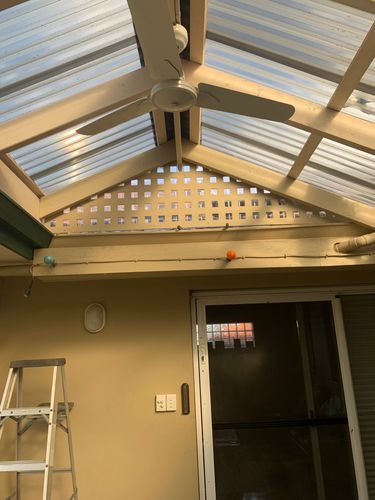The attached photos are from beneath the pergola roof and of a typical roof screw fitting.