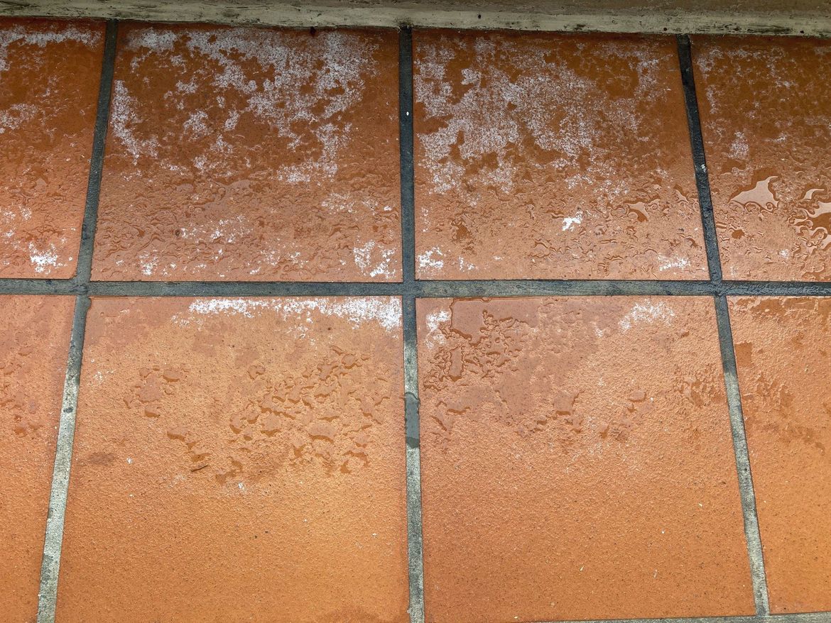 These balcony tiles are around 25 years old and I have 2 areas that scrubbing with sugar soap won't fix.