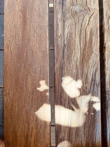 First type of wood. The seller says this is teak which I dont believe as the colour of the wood is too dark. I believe this maybe jarrah. Thoughts? The up close pictures of the surface shows sanded back surface on one piece vs the current heavily weathered surface.