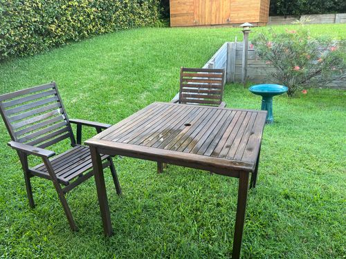 Hi, I have an old outdoor table & two chairs bought from Bunnings many years ago. It’s still strong but looks terrible. Could anyone suggest a stain, preferably to lighten it (although not totally necessary)