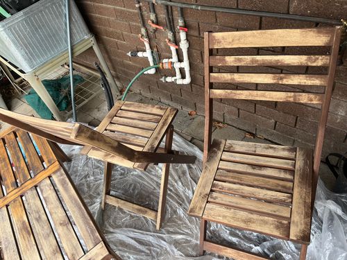 Hi, I got a wooden IKEA outdoor furniture set from marketplace on the weekend and thought I’d freshen it up by giving it a kick of furniture oil.