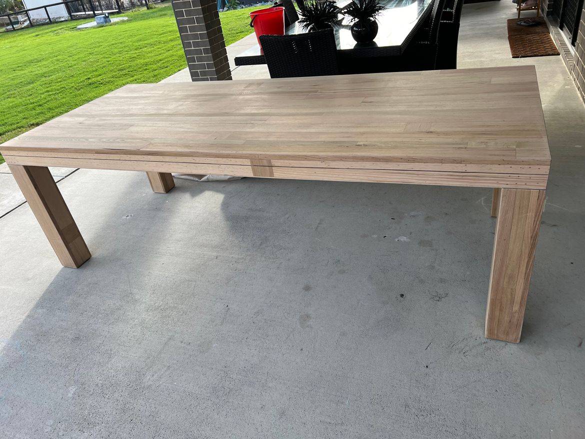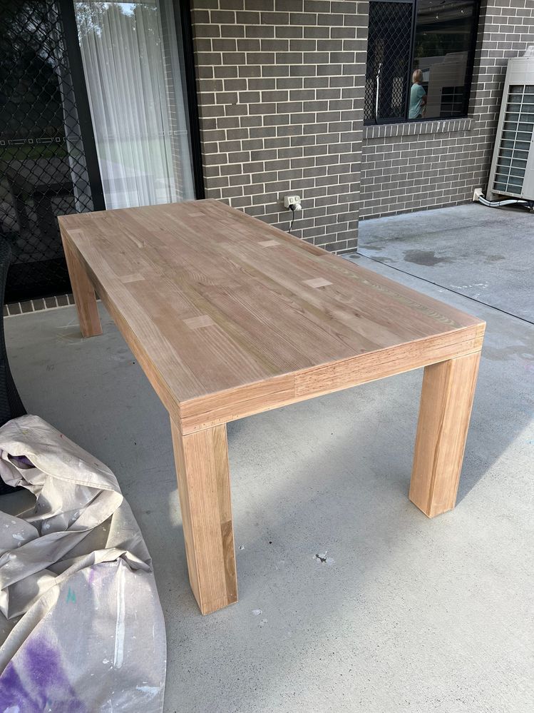 @EricL mentioned that after the initial coat the fine timber fibres will rise leaving a furry finish so , again use the 240G but very lightly, then again lightly with the 400G. Then dust off and do another coat. This time the furry will be much finer, so highly use the 400G until it feels nice and smooth. Being an outdoor table I would give it another coat. Once dry you can use a 1200g pad very lightly, then yep one more and then no sanding. The sides and legs just go 3 coats. It might seam excessive, but will extend the time between having to give it a touch up.