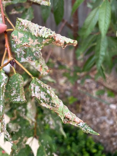 Our cherry blossom leaves seem to be infected . Will be great if someone can shed some light on how to fix this . Please see attached pictures .