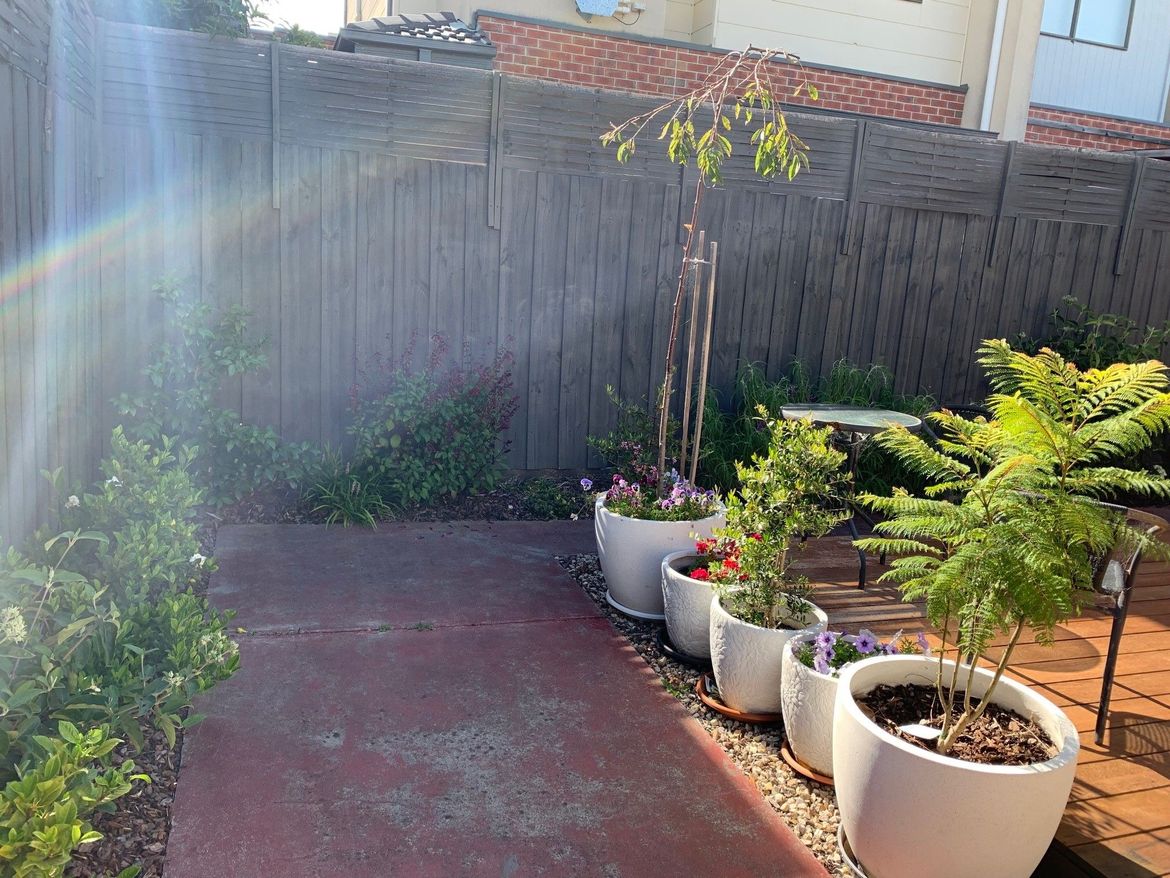 The tree has been moved from the front garden to a pot because I felt the salt air and wind was too harsh for it. It is only one year old. Since being moved, the wind knocked the pot over (I didn't think that was possible because it was a heavy pot, but there you go). I have given been looking at it and only just yesterday decided to give it some Seasol. None of the other plants nearby or even out the front of the house where it first lived, are affected. This is however the 2nd Weeping cherry I've purchased since moving to Safety Beach. The first died of a similar issue... not sure if the salt air and wind might just be too harsh for this type of tree. All the other plants and trees in my garden are thriving and absolutely beautiful. Would love your opinion on weeping cherries and whether they can handle the salt air and wind. Attached are some of photos of my garden.West facing front garden