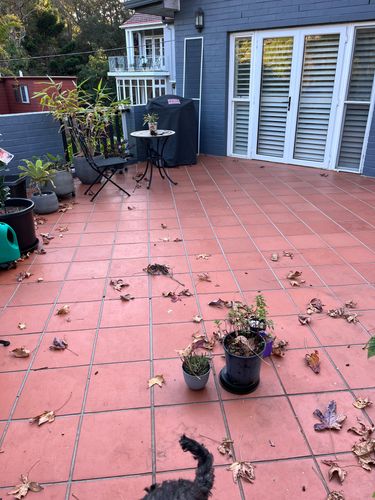 We have moved into an old house with terracotta tiled outdoor area which is over a garage. The tiles have areas of cracking and the grout is broken in places and was probably not waterproofed initially . There is leaking through to the garage. It is a huge area. I have had one person say that the whole area needs regrouting, and another tell me that it should have a waterproofing membrane put on top then re-tiled (which will impact patio doors opening onto it). Someone else suggested we paint a pool surround paint/sealer onto it. Is there a less expensive option that will last us for a few years?