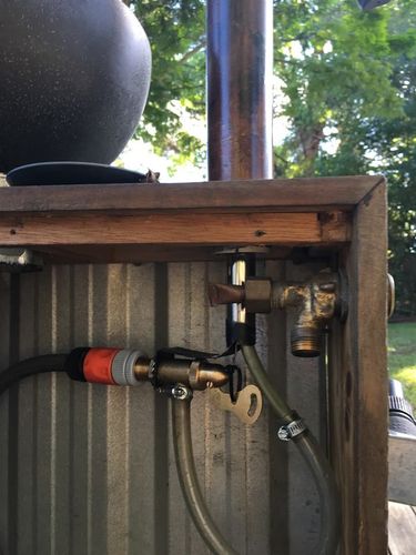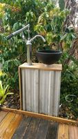 I have posted a photo of my back yard sink before and thought it was time for an just upgrad of my back yard sink. So it now works on mains water pressure. I modifying the way it works and adding a modified Float Valve to it. I also gave it a new paint job. Super.......