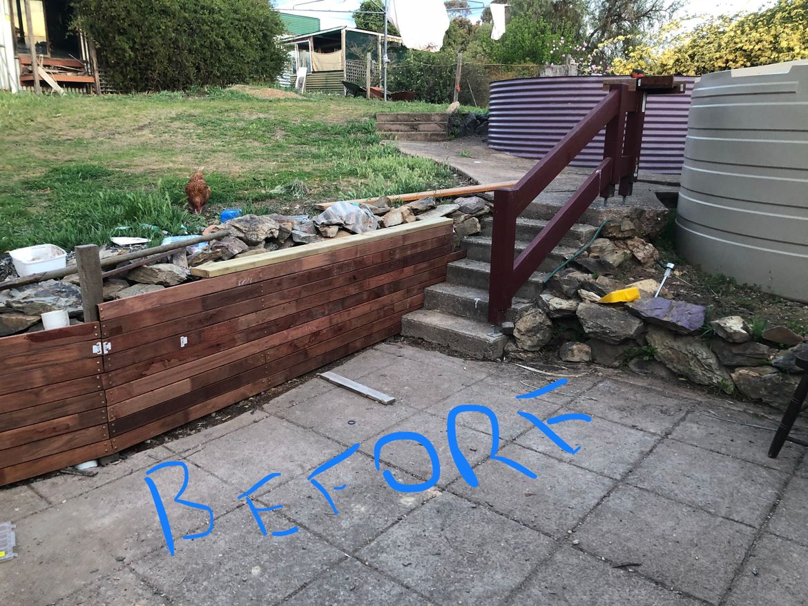 You keeping the pavers @onthefence? They look like they could do with a pressure spray. Maybe you could paint the concrete stairs?