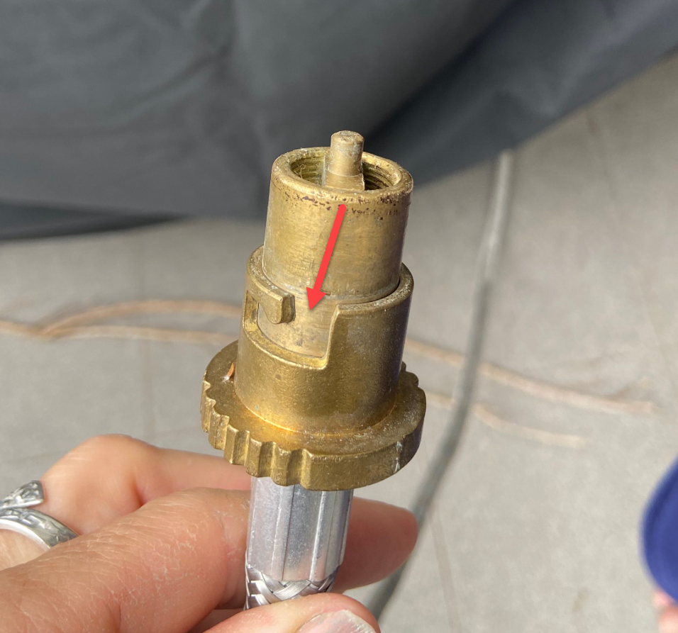 Has anyone successfully connected a BBQ with this hose fitting above to a natural gas outlet like the one below (bottom pic looks up into the outlet)? It seems that the male fitting is too long because of the brass pin in the centre.