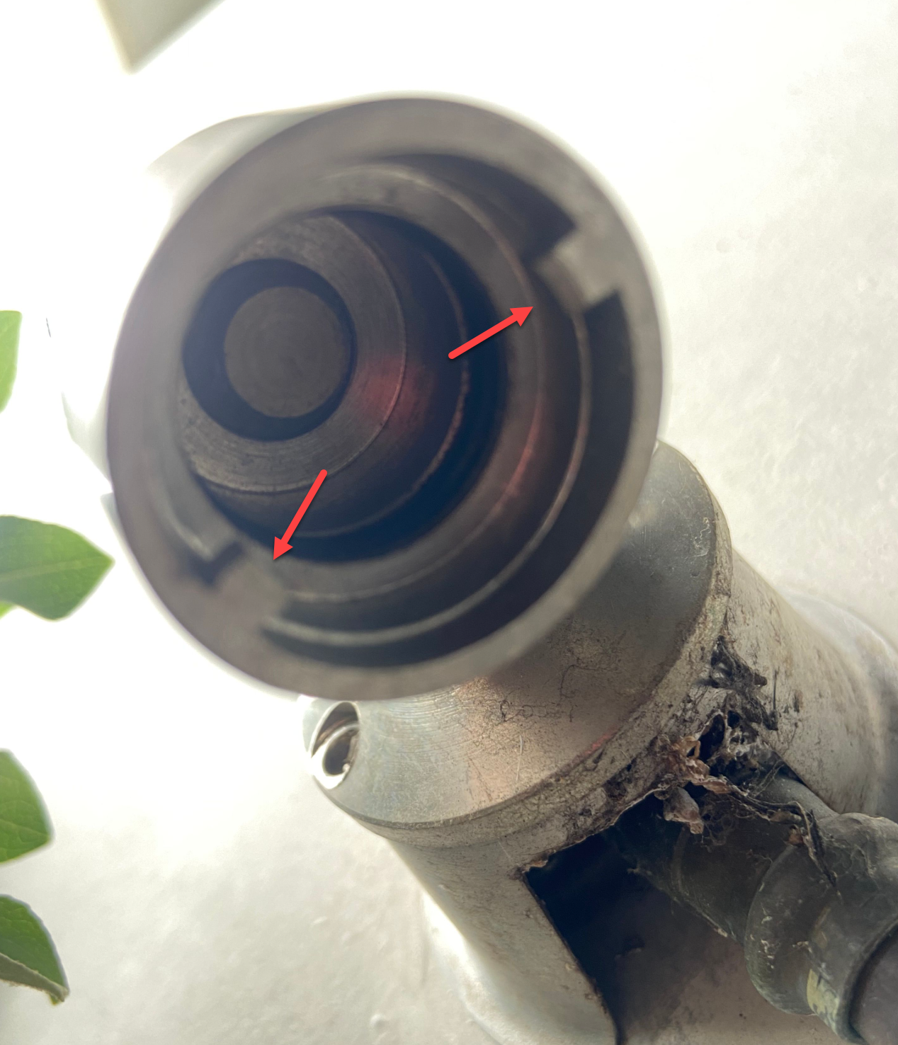 You insert the hose so that the slots line up with these tabs, then rotate it so the tabs sit in the opening beside the slots.