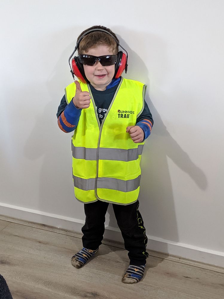 The little sweet talker while I was on the phone managed to score himself an I'm a little tradie Bunnings shirt and his own little tradie high yellow viz safety shirt.