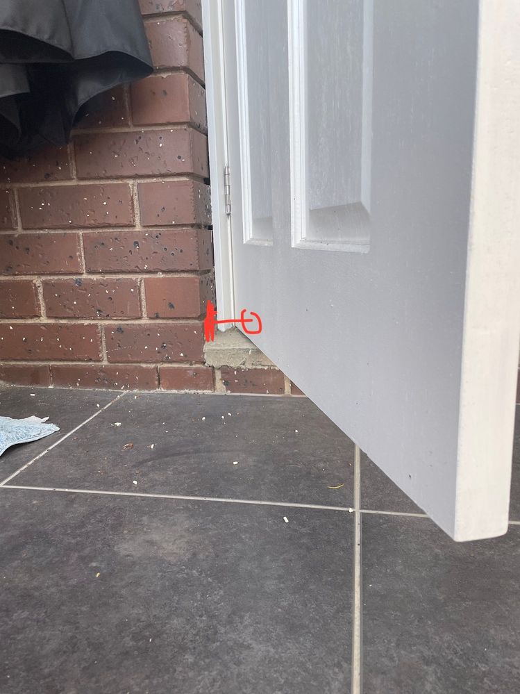 I am looking for a magnetic doorstop where I can drill one part into the door, and the other part into the brick. However I can't find one at bunnings that allows me to drill into two surfaces. It has to be magnetic to keep the door open, and it can't attach to the ground because the door clearance is too high and it'd interfere with the laundry access on the left. Can someone recommend a solution?