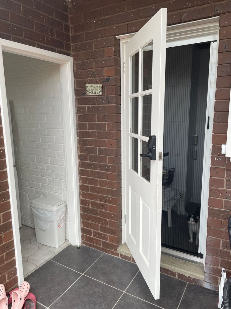 The advantage of a magnetic option is that we can just open the door to the magnet and it will stick, whereas the simple latches have to be latched on and off (and we sometimes are constantly opening and closing the door as we have a cat that scratches at the flyscreen which he is not allowed to do). I'm thinking @Noyade suggestion of a steel latch (in the middle of the door on the brick, and also at the bottom), and two corresponding magnets, might be a good solution. Open to other suggestions but don't want to take up too much of your time/resources!