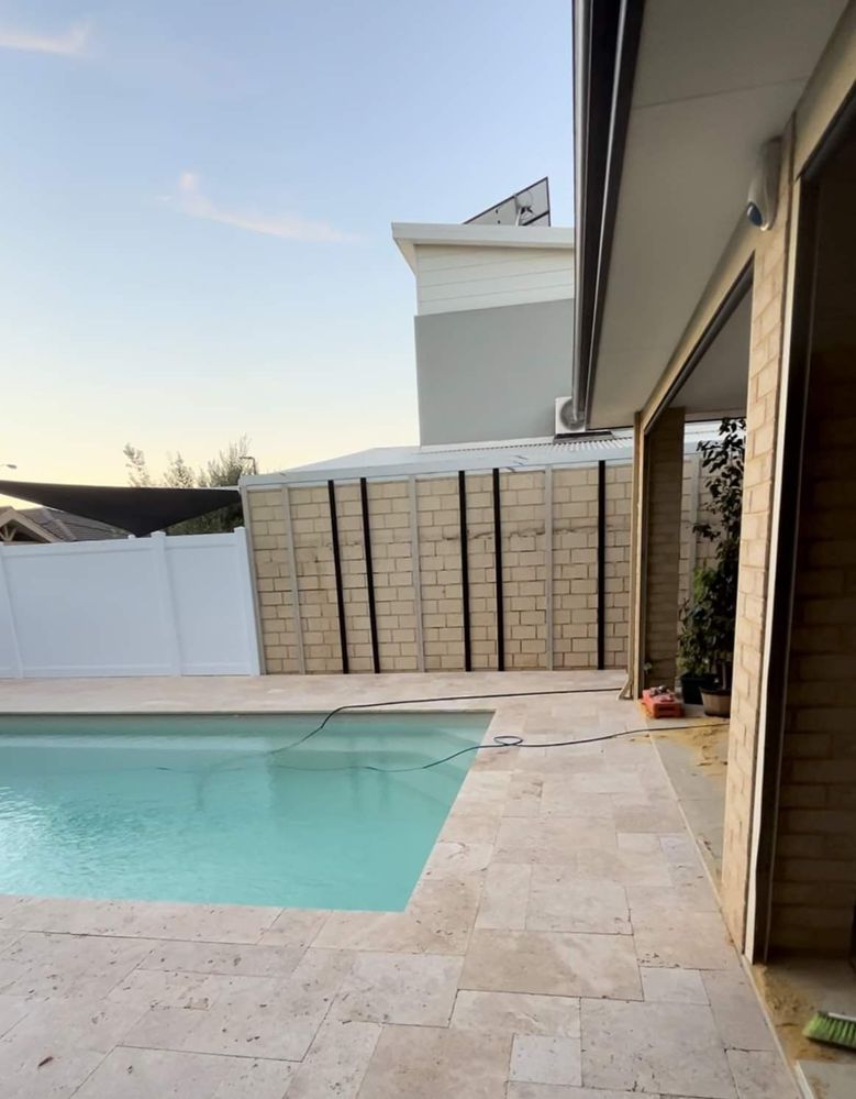 We have a large brick wall (2400x700) near our pool/ alfresco area - it’s a common wall with the neighbours garage wall but they’ve said we can do what we want with it. Need ideas! We’ve already replaced the colorbond fence next to it with Hamptons style fencing so will need to compliment that.