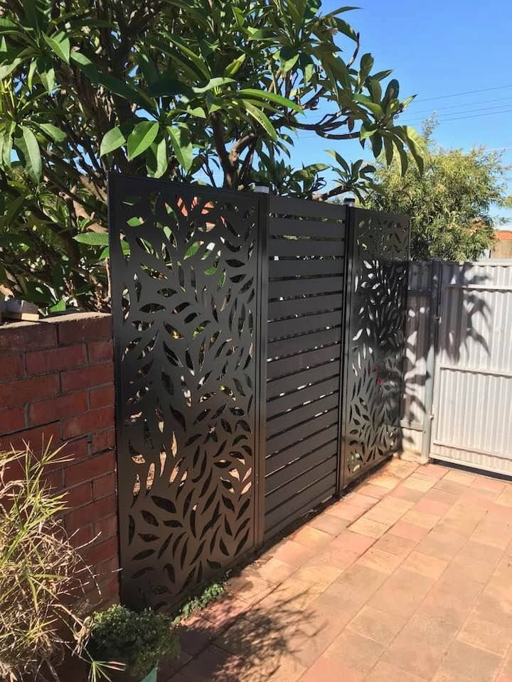 Are you sure you need to go to the trouble of screening it off? It looks like your fence is in great condition and could just be softened by planting a little more or doing something like this - https://www.workshop.com.au/t5/Garden/Climbers-to-dress-up-Colorbond-fence/m-p/18390#M2315