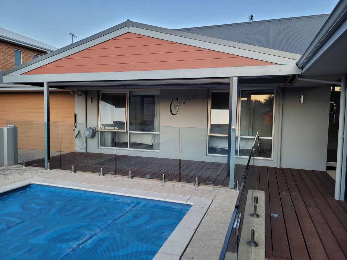 All timber structural members with corrugated steel roof sheeting and flashings to match the existing house. Internal lining is marine grade plywood. All fixings were either stainless steel or galvanised. All major materials purchased from Bunnings.
