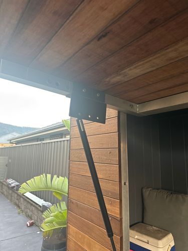 Given the weight of the door, I suspect several heavy-duty hinges were used. You've then got the gas struts that help raise and hold the door in position. The struts we keep in-store are of the lighter variety, so you might need to speak with our helpful team at your local Bunnings Special Orders desk to order some more industrial-sized versions from our supplier, Goliath.
