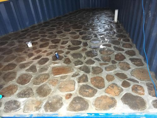when making an outdoor bathroom floor out of rock seamed like a good idea