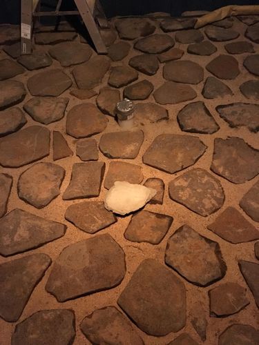 once it dried out enough we hand washed it to get excess motor off the rocks with a water and acid solution