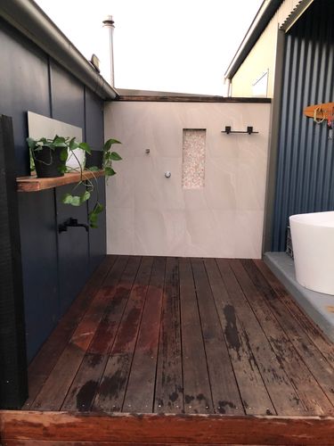 It was a space that was unattractive. I’ve always wanted an outdoor shower and bath so the project began.