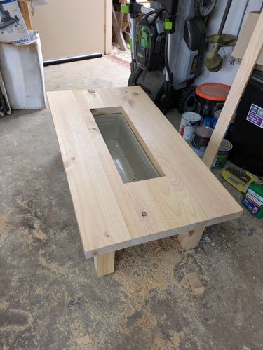 I needed an outdoor coffee table. I also wanted it multi purpose so I combined a cooler insert with a coffee table. The cooler section is covered over when not in use.