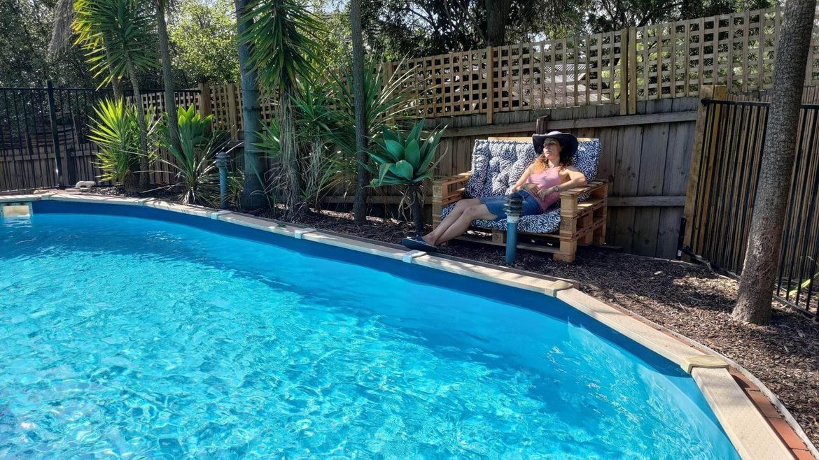 Thank you so much for sharing your outdoor furniture pallet project. I can already tell that this is a successful furniture build as the person using it is totally relaxed. Plus, your location in front of the pool is perfect as the sound of the water is always calming. Did you use 4 pallets in total? Will you be painting the pallet in the future to extend its usefulness?