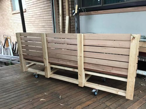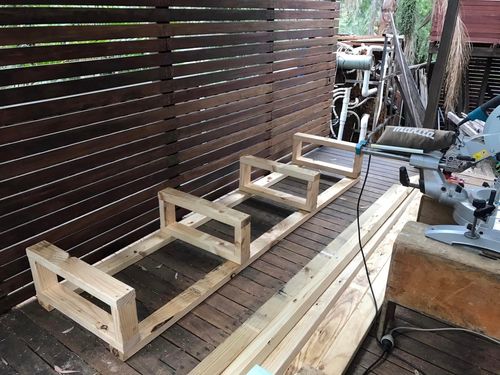 Slats just resting at this point. I was going to see if I could get some more yellow gum but the shortesy lengths were 4m and I didnt want wastage but wanted it to look good. Quandry plus!