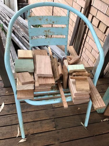 Bingo! found the most appealing colouring match, yellowgum back and merbau seat. Plus one extra piece for just under the lip of the seat!