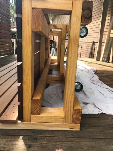 Final wheel spacing decided. I didnt want the wheels further towards the ends as then potentially someone running and jumping onto the seat may make it flex in the middle (well not really with the amount of timber in it lol ) but that was the thinking behind the spacing.