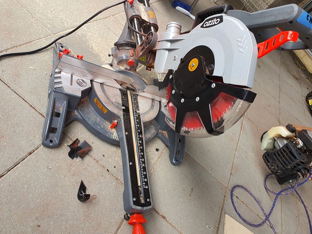 Just looking for advice, basically the other day I was slowly cutting some lengths of bunnings 7MM birchwood ply when all of a sudden the guard exploded into pieces, upon inspection it looks like there was a metal foreign object that looked like there was some sorta string near it in the ply, ruined my good blade too as it slightly warped now. Is is possible to get another guard? The mitre saw is only 3 months old. I'm guessing bunnings won't accept the claim if I were to ask for a replacement? Was just not expecting this to happen.