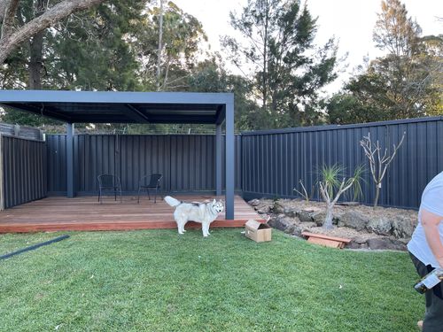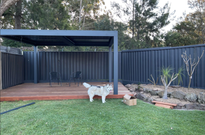 I sprayed the fence with Dulux Weathershield Momentum. I love the colour but now have to continue the whole fence! My new deck and pergola and updated rockery