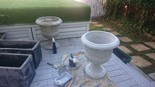 I have these two pots which have seen better days I want to restore them what paint should I be using and steps.