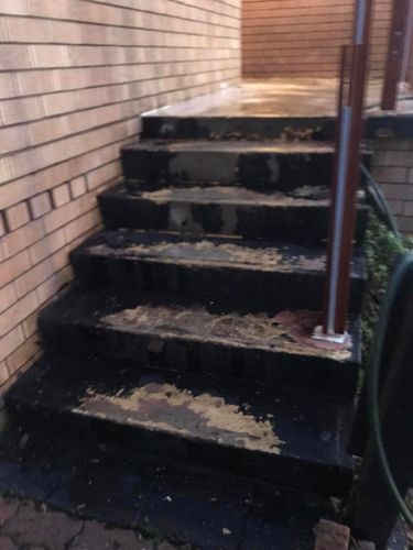 The steps were the hardest to remove until you managed to get under the edge of the paint with the high pressure blaster