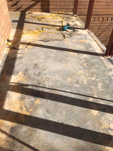 After the first water blast I went over the patio with a paint scraper to remove any flaky pieces I could get.